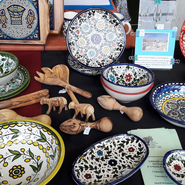 Solidarité avec les groupes d'artisants palestiniens Qui sommes nous Les produits - Le Catalogue Les Voyages Actualité Qui sommes nous Les produits - Le Catalogue Les Voyages Actualité
